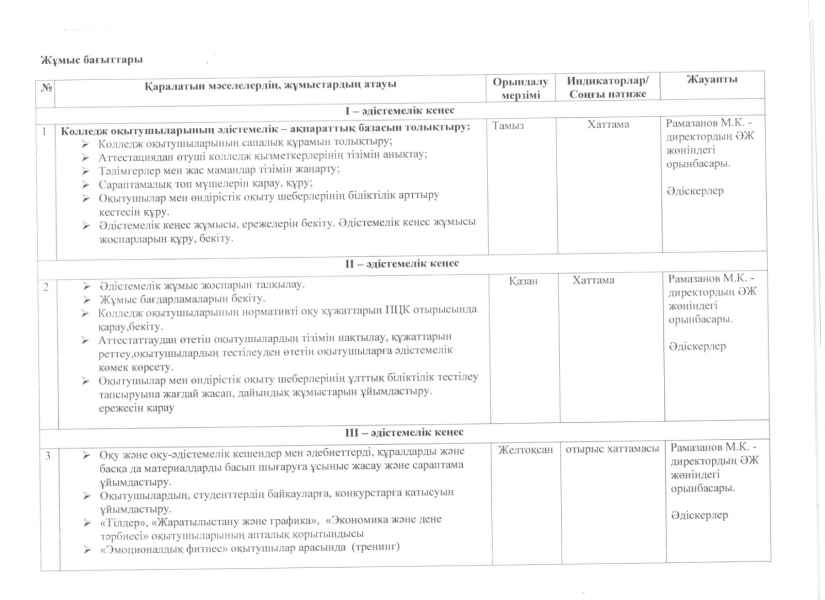 Әдістемелік кеңес жоспары